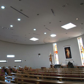 Sarcina proiectantului era iluminarea oltarului cu lumina naturală, respectiv iluminarea cu stil a spațiului intern.