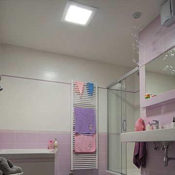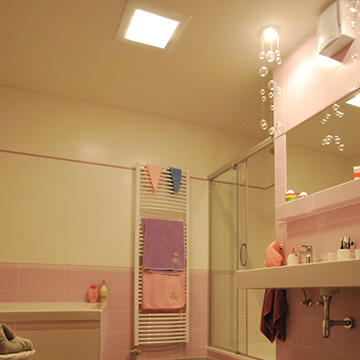 Pentru a păstra lumina din baie, în tunelul solar am folosit sistemul Night Set cu leduri.